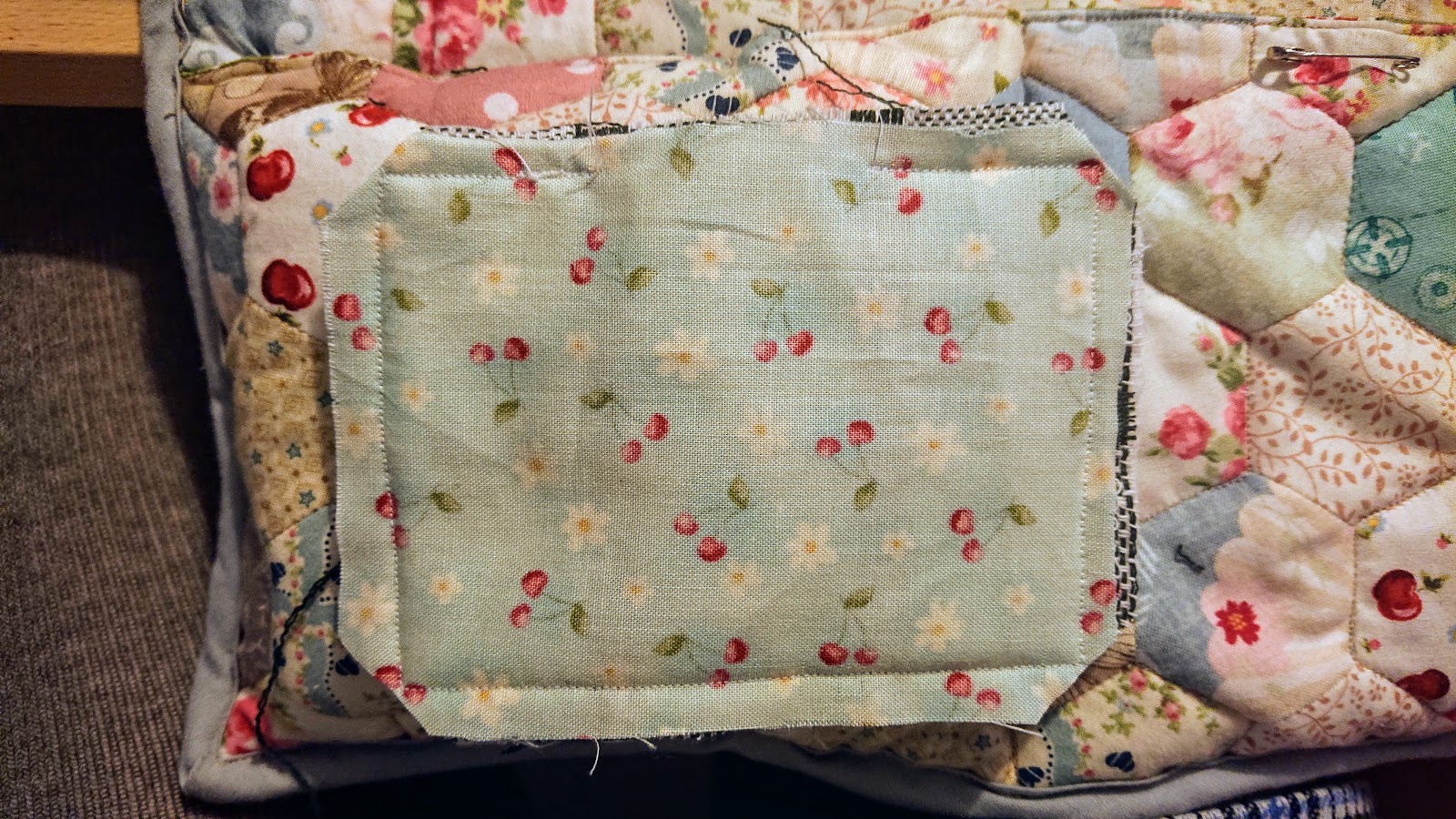 I layered them with wadding on the bottom, then towel, then the cute scrap piece. The scrap piece is right side down, I did a silly and stitched the first one right side up and had to unpick it all.